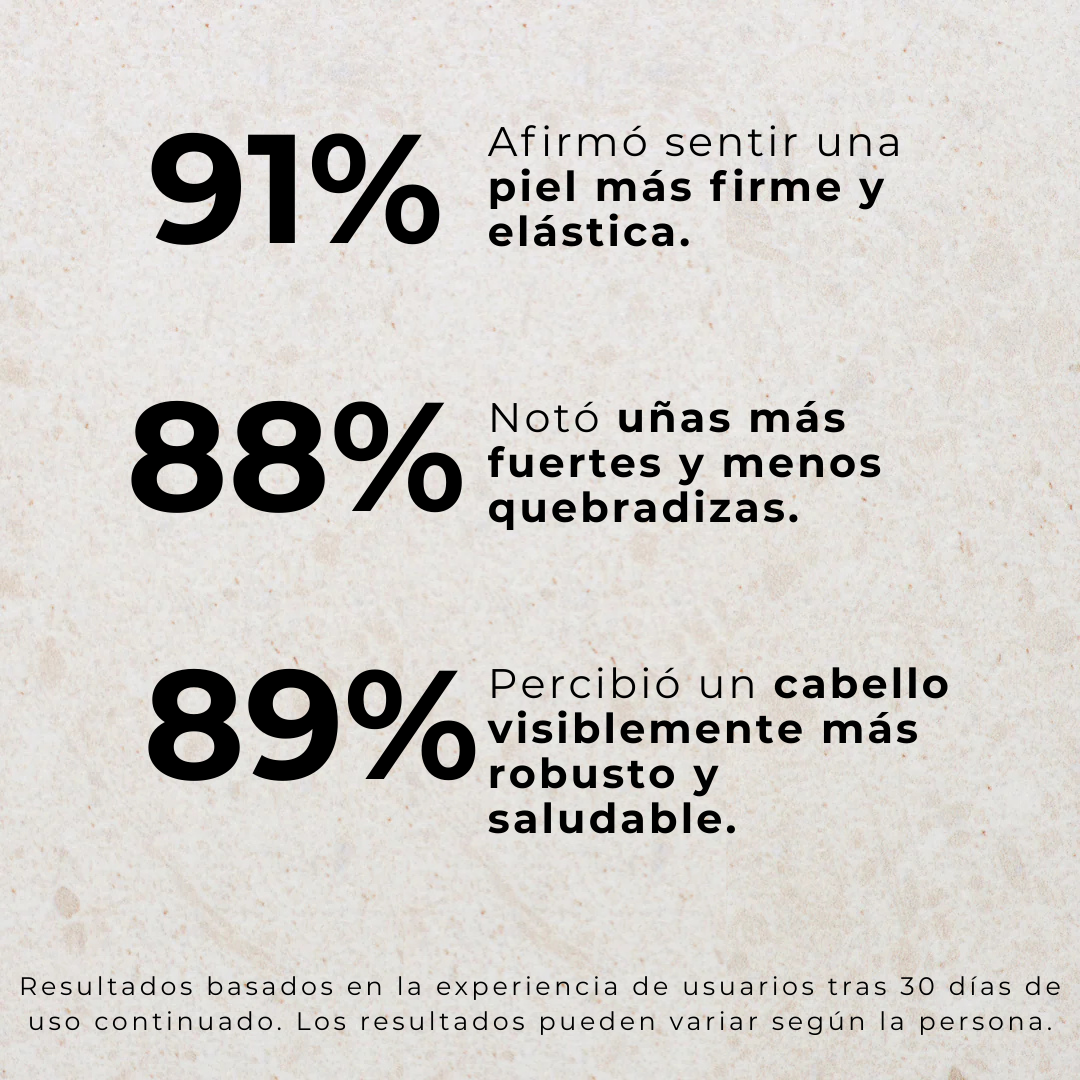 Al principio no esperaba grandes cambios, pero poco a poco empecé a verme mejor la piel y el cabello. La mejora ha sido progresiva y natural, justo lo que buscaba en un producto de este tipo.